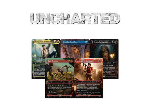 Colecție exclusivă Secret Lair inspirată de seria de aventuri Uncharted! Acest set special aduce spiritul aventurier al lui Nathan Drake în lumea Magic: The Gathering, cu ilustrații unice dedicate vânătorii de comori și explorărilor periculoase.