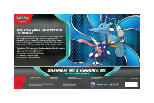 Cu atacuri puternice și HP mare, Pokémon ex au ca scop să spulbere opoziția în luptă! În această colecție, primești cărți promo foil cu ștampilă specială ale lui Greninja ex și Kingdra ex, plus o versiune oversize foil a lui Greninja ex pentru display.