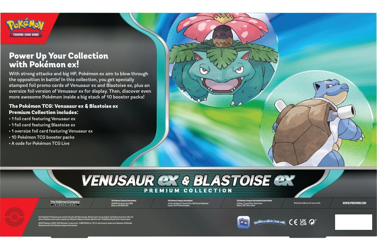Pokémon TCG: Venusaur ex & Blastoise ex Premium Collection include: