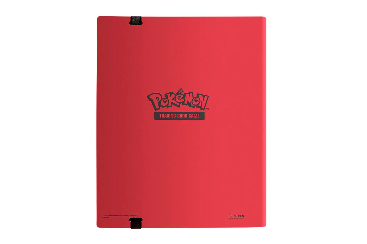 PRO-Binder cu 9 buzunare pentru Pokémon cu o imagine impresionantă în alb și negru a lui Charmander pe un fundal roșu vibrant și include închidere cu bandă elastică.